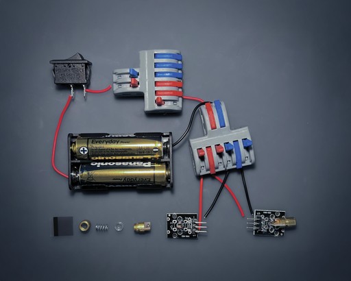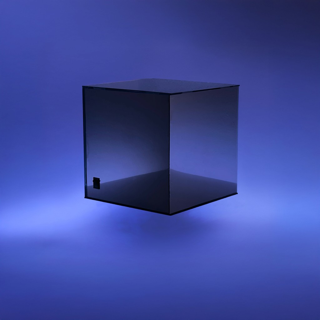 Il cubo riflettente si attiva tramite un interruttore. Al suo interno è collocata una semicirconferenza che ricorda la luna, immagine ricorrente nel film. All’interno di questa struttura sono integrati: un circuito elettrico, sorgenti laser a differenti lunghezze d’onda, lenti biconcave e biconvesse, e reticoli di diffrazione, necessari per generare le proiezioni luminose.