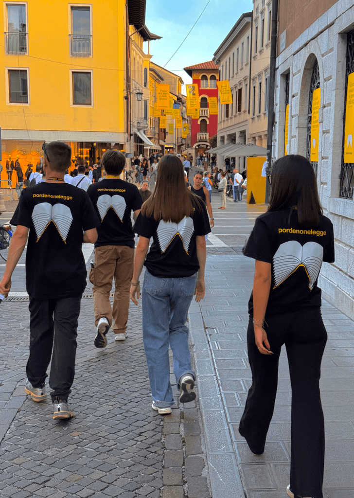 Vedere concretizzarsi questo lavoro nelle divise indossate dai 245 Angeli di Pordenonelegge è stato un risultato particolarmente significativo. L’esperienza mi ha permesso di contribuire a un’immagine identitaria rilevante per un festival riconosciuto a livello europeo e di cui la città di Pordenone, Capitale Italiana della Cultura 2027, si fa portavoce. Ho apprezzato la fiducia accordatami dall’università e dalla Fondazione, che mi hanno dato la possibilità di lavorare su un progetto di grande valore per la comunità.
